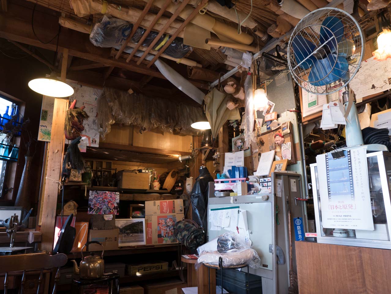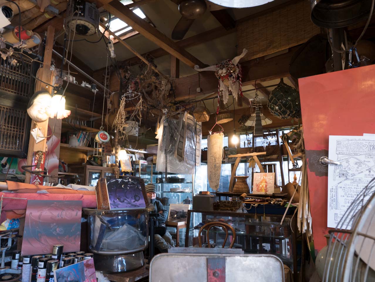 まず、WEBサイトに記載されている住所に行くと、そこは一軒の雑貨屋「zitti」だった。軒が賑やかで、様々な物品がひしめいている。中に入ると、商品とカオス*ラウンジメンバーの作品が雑然と並べられており、雑貨屋というよりガラクタ屋というべき雑多な印象だ。